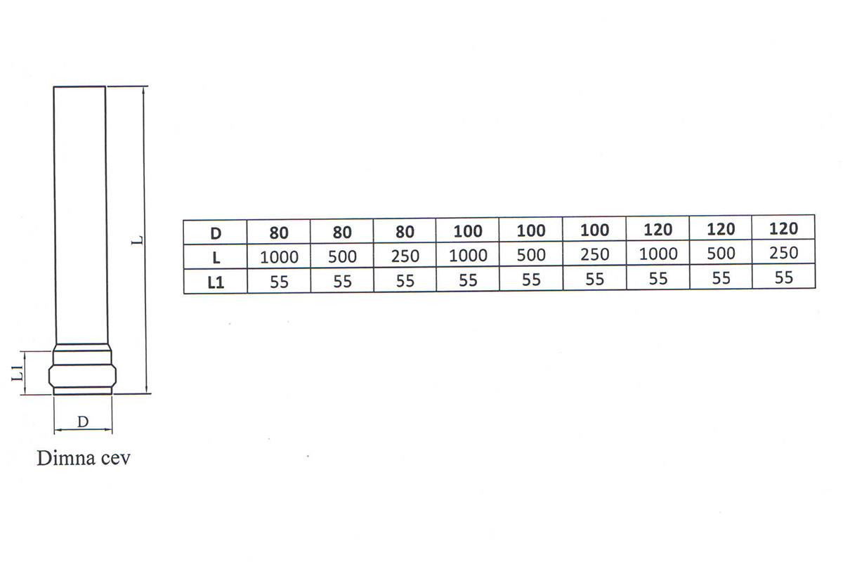 Ovaj proizvod predstavlja cev-segment dužine jednog metra za montažu dimovodnog sistema. Koristi se kao produžetak dimovodnog voda kod kotlova na pelet. Napravljena je od metalnog / čeličnog lima i kompatibilna je sa ostalim delovima serije fi 80.