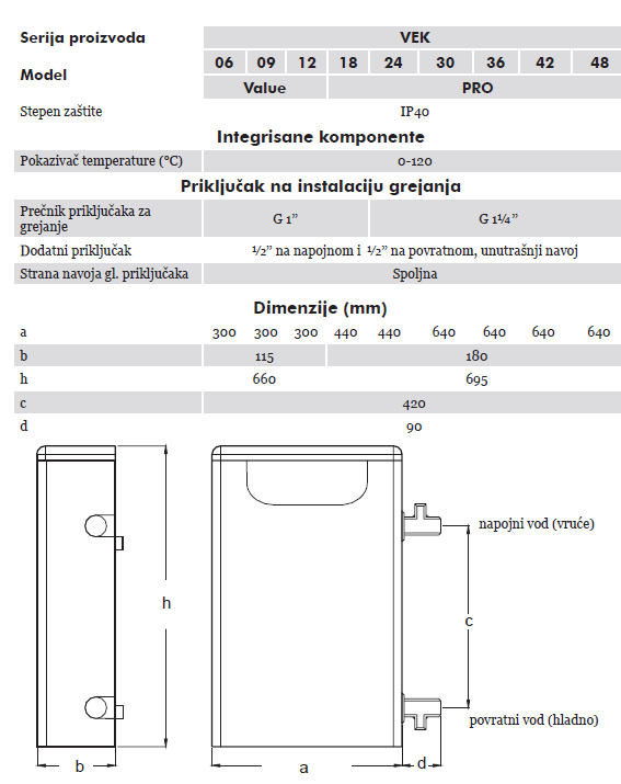 Eko-pan VEK 36.PRO je visokoučinski električni kotao snage 36 kW, namenjen zagrevanju većih stambenih, poslovnih i industrijskih prostora površine do približno 220-260 m².
