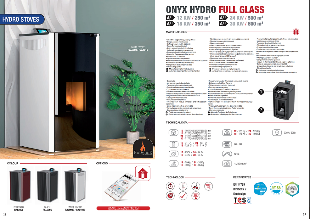 Kupovinom modela Onyx Hydro 18 kW dobijate vrhunski kamin na pelet koji nudi visoke performanse, naprednu kontrolu i sofisticiran dizajn. Ovaj uređaj obezbeđuje konstantnu toplotu, minimalnu potrošnju i potpunu automatizaciju rada – savršen izbor za one koji žele udobnost, uštedu i moderan izgled u jednom uređaju.