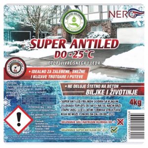 Super Antiled Nero je moćno sredstvo namenjeno za brzo i efikasno otapanje snega i leda. Idealan je za zaleđene, snežne i klizave trotoare, puteve, dvorišta, prilaze i sve površine koje zahtevaju sigurnost u zimskim uslovima.