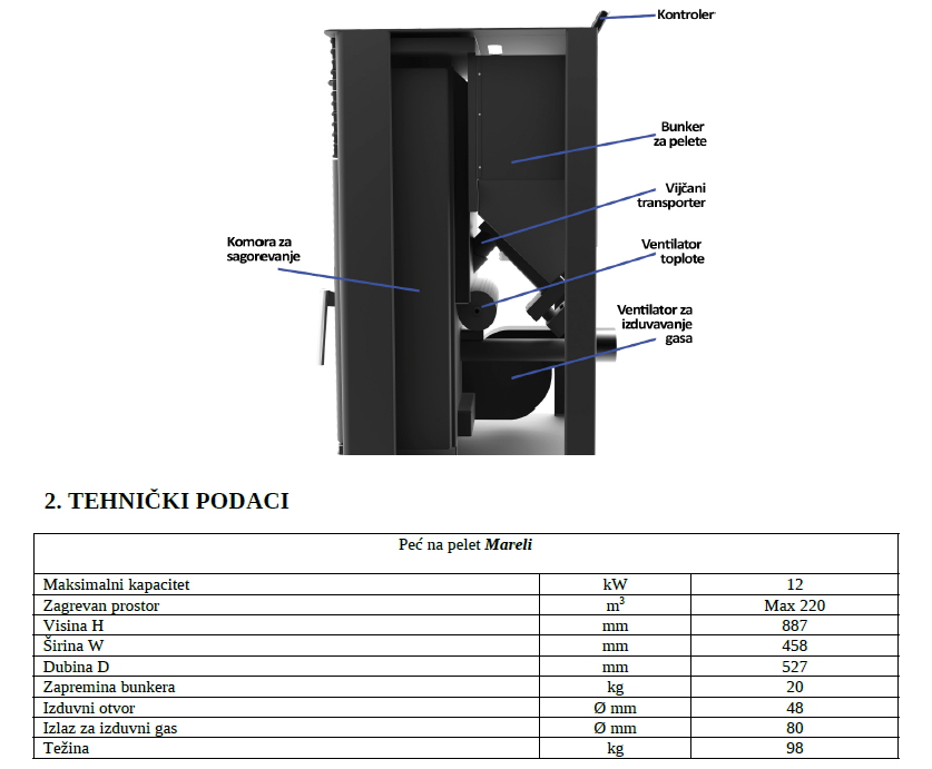 Prečnik dimnjaka: fi 80 mm.